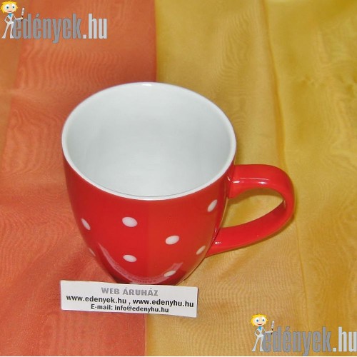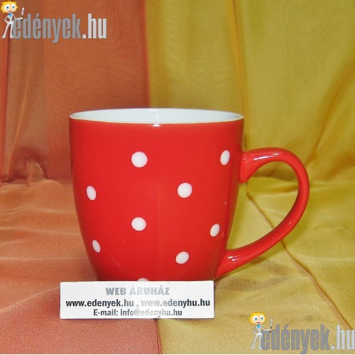 A babos kerámia bögre 400 ml 286289-BQT, henger alakú öblös ivóedény, amely alulról fölfelé szélesedik és füle van. Egyedi formájú és színű, kerámiából készült bögre, mely kívül piros alapon fehér pöttyökkel, belül ragyogó fehér mázzal van bevonva. Anyaga rideggé, keménnyé kiégetett kaolin zománcbevonattal. Jó ránézni, öröm fogni, és igazán élvezet belőle inni! A babos kerámia bögre alkalmas hideg és forró italokhoz egyaránt, de bárminemű ital felszolgálásánál, fogyasztásánál is nélkülözhetetlen tálalóeszköz.